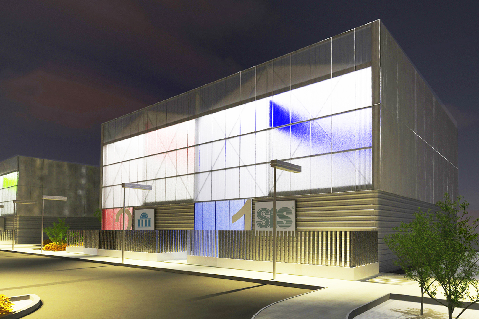 Exteriormente no pueden tener mayor simplicidad y es la misma repetición de materiales luminosos lo que unifica y al mismo tiempo distingue los diferentes espacios. La prefabricación es el elemento clave del desarrollo del proyecto, junto con el empleo de hormigón para los paneles prefabricados y policarbonato para obtener luminosidad en el interior.
